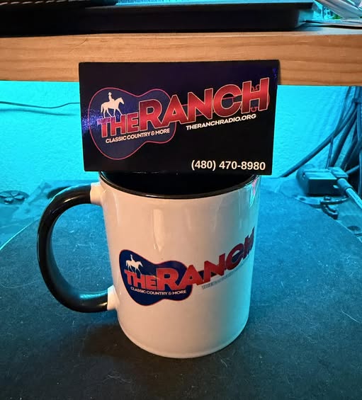 Howdy! We’re doing our annual fundraiser to pay our music royalties. We need to raise at least $1,000 and we have already raised just over half of it! We would love it if you would help us reach our goal. You can click the yellow donate button to the left (or above if on smart phone) to donate. Anyone who donates $50 or more will get a coffee mug and a magnet. E-mail me your address at info@theranchradio.org or make sure to add your address in the notes of the donation if you donate $50 or more. We are a 501(c)(3) non-profit. Thank you to all who have donated! This mug is a prototype but it should look real close to this.